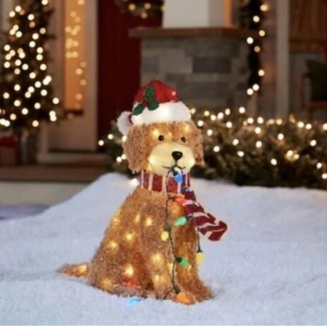 Christmas Goldendoodle Dog Light Up Outdoor Figurine Garden Ground